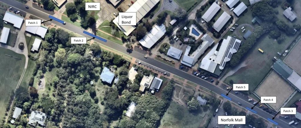 Taylors Road—an aged asphalt carriageway omitted from a prior overlay—showed oxidation, cracking and frequent potholes. Working with Norfolk Island Regional Council, we delivered patch repairs and a full‑width rejuvenation using PHF™ and PRS/TL2000. Local crews were up‑skilled to operate a simple spray‑truck configuration and finishing workflow.